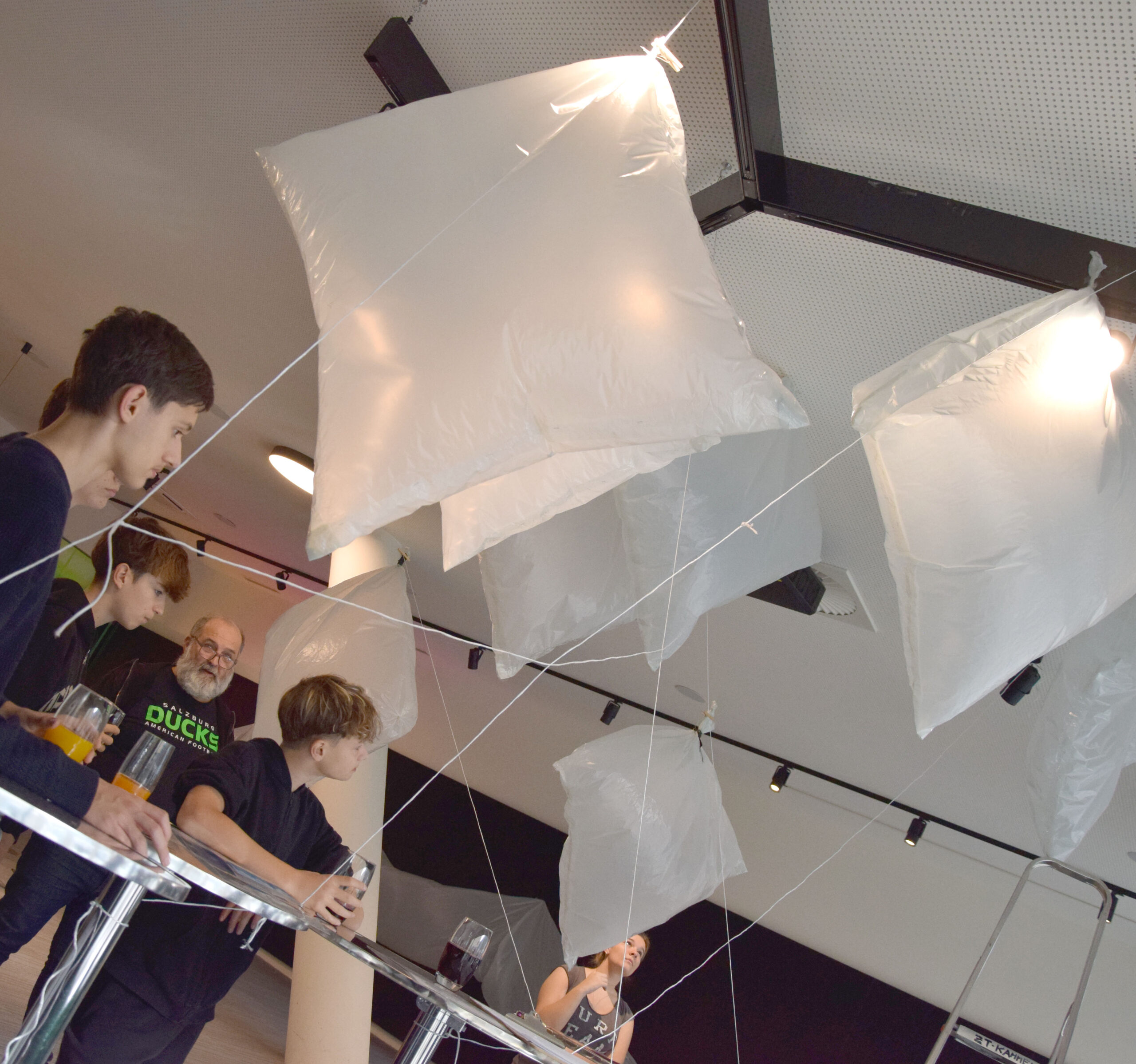 Zum 15-jährigen Jubiläum der technik bewegt Impulswochen fiel am 7. November 2025 in der ZT-Kammer Nord in Salzburg der Startschuss: im Kickoff-Workshop Wir brauchen Raum! bekamen Schüler:innen der 6. Klasse des MORG Grödig theoretische und sehr praktische Einblicke in Pneu-Architekturen. Experimentierfreudig bastelten sie neue Formen – mit Luft, Seilen und viel Spaß!